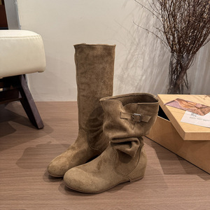 法式内增高长筒堆堆靴女显瘦2025新款秋季高筒骑士靴不过膝长靴子