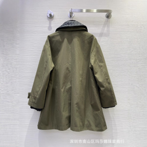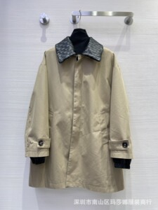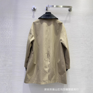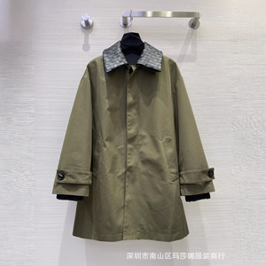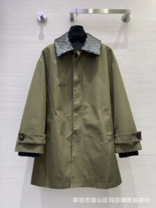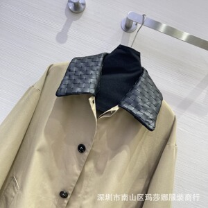 高极感秋冬新款气质翻领领宽松百搭时髦编织真皮领拼色风衣中长款