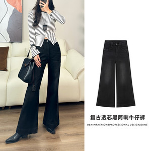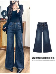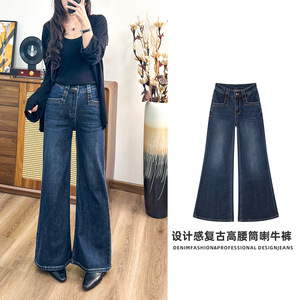 2025秋季新款女士弹力筒喇牛仔裤高腰显瘦日常休闲百搭批发牛仔裤