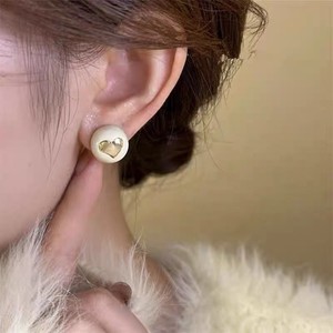 F0947红爱心米色球球耳环
