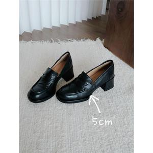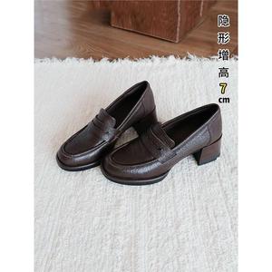 羊皮版~极简风复古大象纹粗跟单鞋女2025新款百搭增高时装乐福鞋