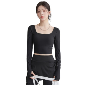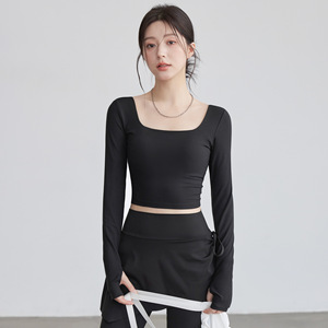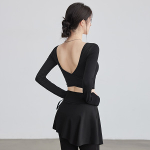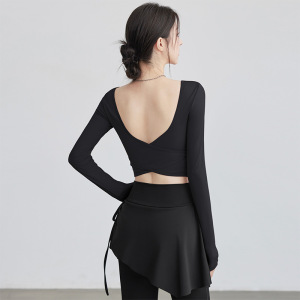 新款瑜伽服女显瘦露背上衣含胸垫长袖美背跑步训练服普拉提健身服