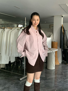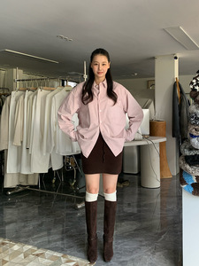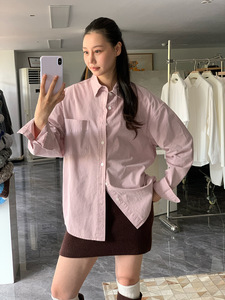 SROOM十三行单排扣开衫长袖松弛抗皱洗水纯色宽松阔肩翻领衬衫女