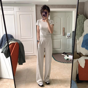 Lu家同款螺纹瑜伽神裤Softstiome宽松直筒垂坠阔腿长裤女运动高腰