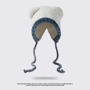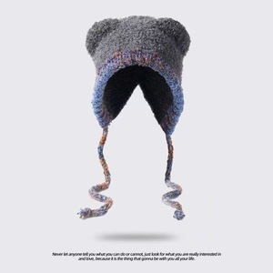 2025新款可爱小熊耳朵针织毛线帽女毛绒帽子秋冬季保暖护耳大头围