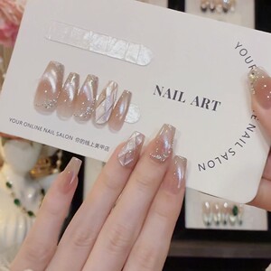 【金沙菱格】新款纯手工穿戴甲鎏金腮红猫眼高级显白纯手作美甲贴