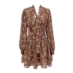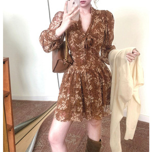 茶歇法式气质老钱风碎花连衣裙子女秋季2025新款长袖雪纺收腰短裙