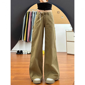 卡其色美式绿色低腰牛仔裤女2025年秋季新款宽松工装直筒阔腿裤子