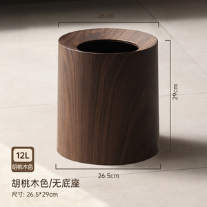 胡桃木纹垃圾桶家用客厅卧室大容量轻奢创意商用民宿中古风纸篓桶
