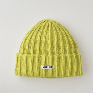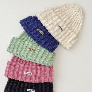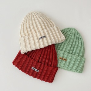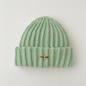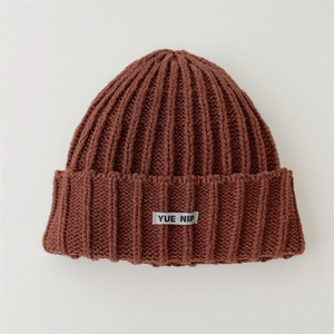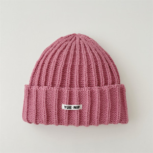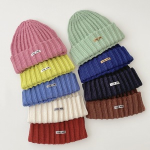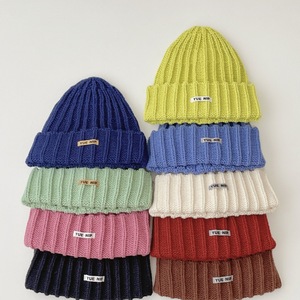韩系简约纯色儿童针织套头帽批发亲子款户外出行百搭保暖毛线帽