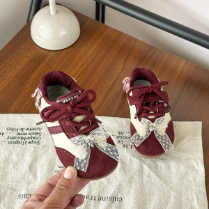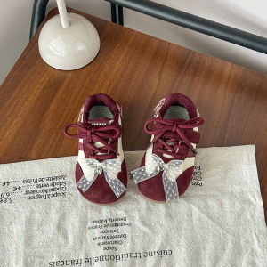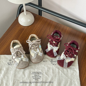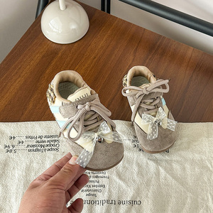 韩版儿童格子蝴蝶结德训鞋2025年秋冬季新款女童运动鞋学生休闲鞋