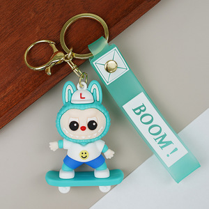 跨境新款滑板拉布布钥匙扣可爱潮流公仔钥匙挂件汽车钥匙配饰挂饰