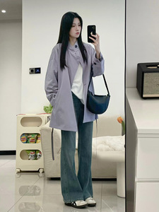 韩系氛围感穿搭紫色风衣外套女早初秋季2025新款气质开衫上衣