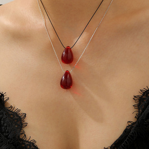 时尚设计感小红豆水滴吊坠项链女轻奢小众高级感锁骨链颈链配饰品