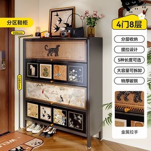 新中式家用鞋柜收纳箱中古风入户玄关杂物收纳筐抽屉式储物一体柜