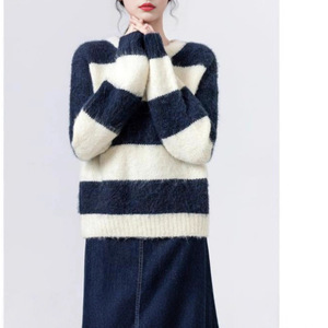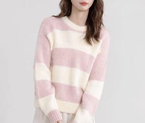 复古条纹毛衣女秋冬2025新款慵懒风软糯圆领针织衫内搭套头上衣潮