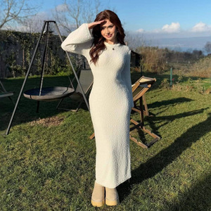 欧美女装跨境外贸2025秋新款长袖圆领毛衣裙收腰气质时尚连衣裙