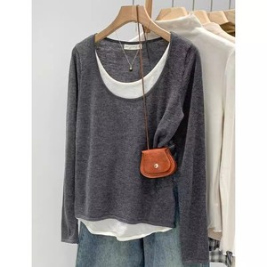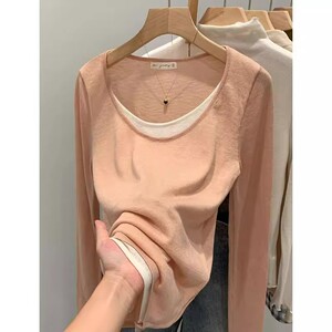 大码女装2025春夏早秋特大码300斤撞色假两件修身针织打底衫