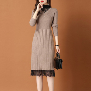 针织连衣裙女2025新款配大衣中长款毛衣裙秋冬过膝针织打底蕾丝裙