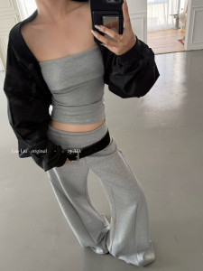 十三行正品2025秋季新款韩版显瘦抹胸+纯色外套+拼色翻边休闲裤女