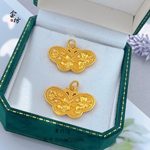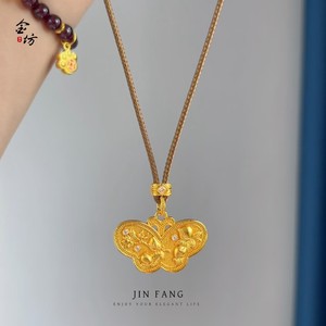 金店同款古法金色镶钻庄周梦蝶蝴蝶吊坠项链精致锁骨链女