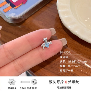 新款316L医用钛钢飞艇kt猫耳饰耳骨钉爆闪爱心锆石耳钉养耳洞小众