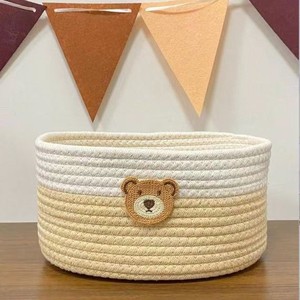手工编制收纳可爱小熊化妆品桌面遥控器零食玩具储物盒充电器收纳