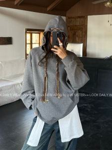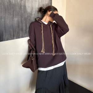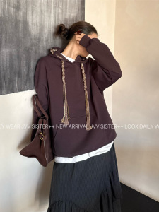 JVV十三行2025秋季新款编织帽绳连帽宽松卫衣慵懒风上衣女潮71333