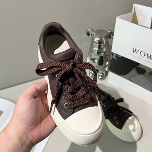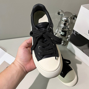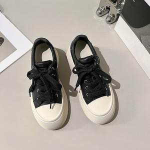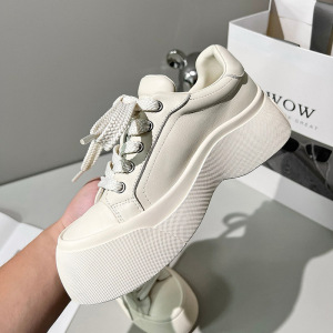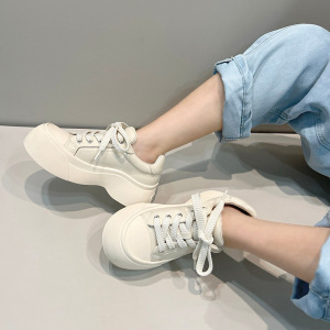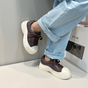 欧洲站2025秋季新款真皮松糕厚底板鞋时尚系带纯色舒适运动休闲鞋