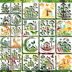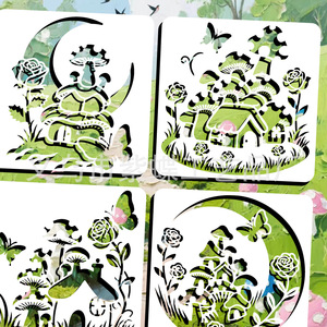 厂家直售蝴蝶花草蘑菇自然清新模版画跨境儿童diy手抄报镂空模版