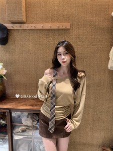 GS.GOOD START-秋季时髦别致设计感露肩长袖针织衫G6573X(配领带)