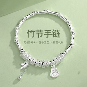 足银S999竹节手链女文艺时尚葫芦手串百搭高级感手饰品送朋友闺蜜