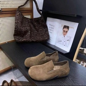 英伦风低跟小皮鞋2025年秋季新款一脚蹬乐福鞋深口单鞋女休闲女鞋