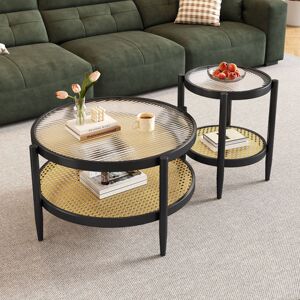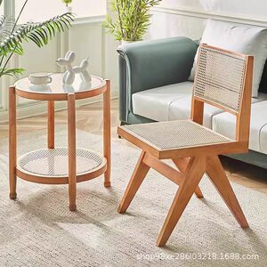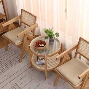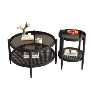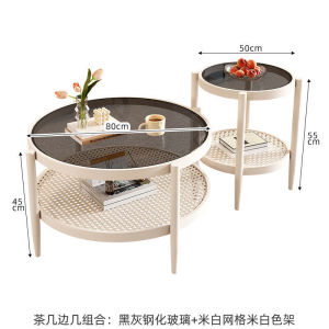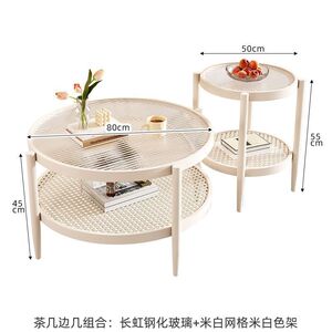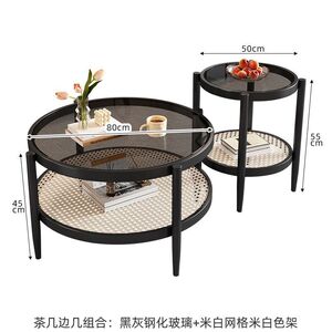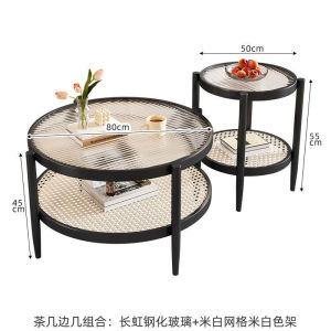 藤编茶几小户型茶几家用圆形茶几长虹玻璃双层茶几客厅组合小茶桌