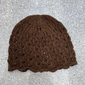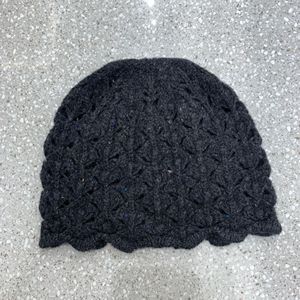 全羊毛镂空花边针织帽秋冬小众文艺毛线帽钩花套头帽时髦百搭冷帽