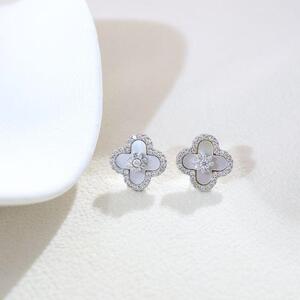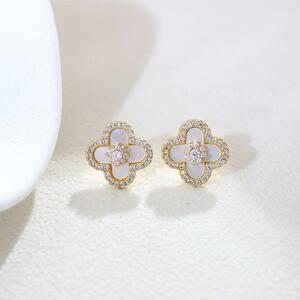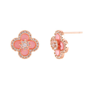 C-74玫瑰金粉色贝壳四叶花开口戒指