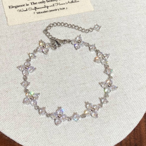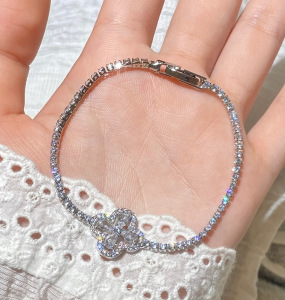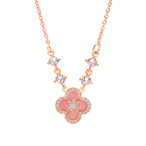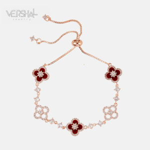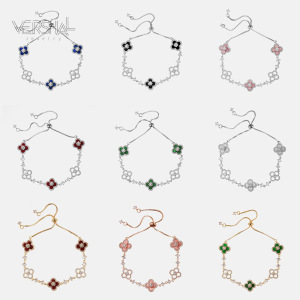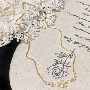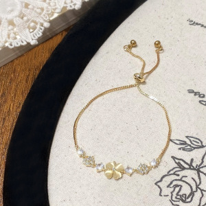 跨境幸运玫瑰金红花朵四叶花手链INS铜镀真金抽拉项链手链套装女