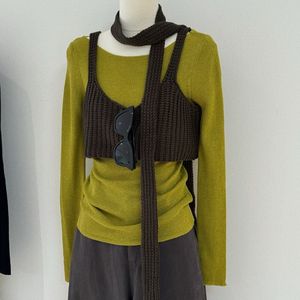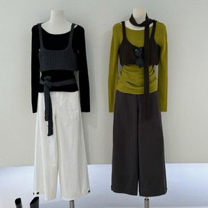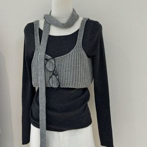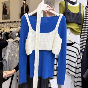 韩系纯色粗线背心针织上衣女两件套2025秋季新款套装灰色蓝色冰丝