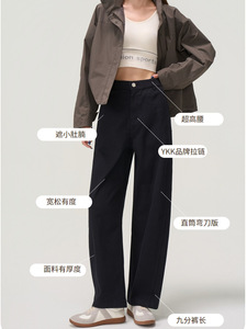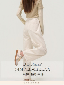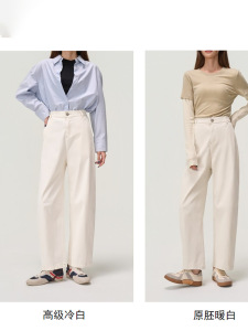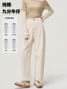 【白色牛仔】25秋冬500克冷暖白色直筒弯刀宽松九分奶奶裤小个子