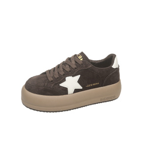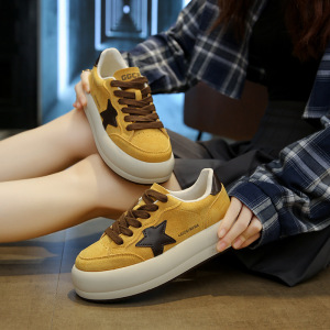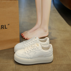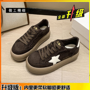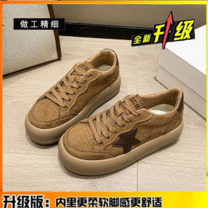 真皮复古做旧星星板鞋女款2025秋季新款松糕德训鞋圆头厚底小白鞋