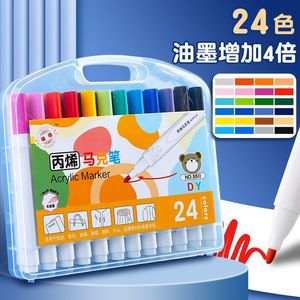 丙烯马克笔24色36色学生美术专用幼儿园防水不晕染不透纸彩色画笔