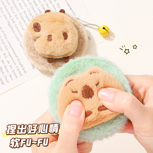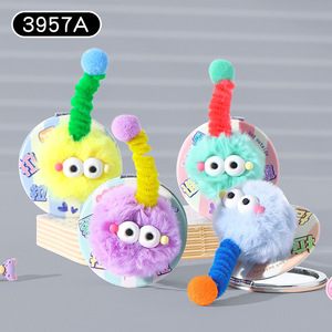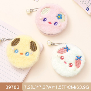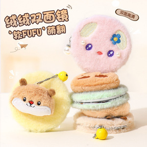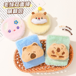 双面毛绒随身化妆镜ins折叠可爱动物玩偶手持圆形翻盖高颜值简约