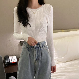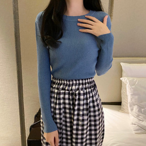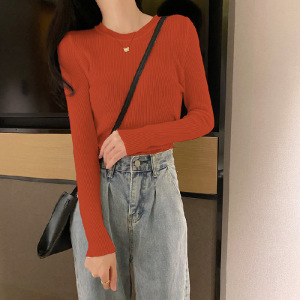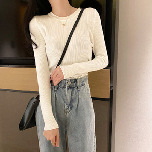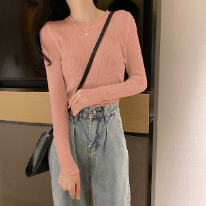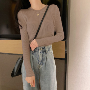 秋冬2025新款圆领修身紧身长袖打底针织衫上衣春秋薄款内搭毛衣女