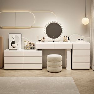2025现代简约一体奶油卧室斗柜小户型梳妆台床头柜实木化妆桌新款