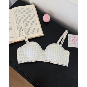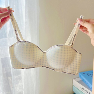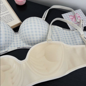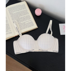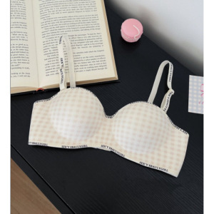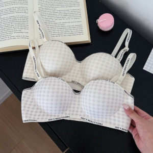 跨境新款格子聚拢显大无痕内衣小胸手掌杯字母肩带透气无钢圈文胸