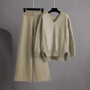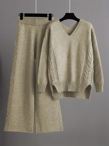 针织阔腿裤毛衣套装女2025秋装新款韩版宽松厚时尚气质两件套潮