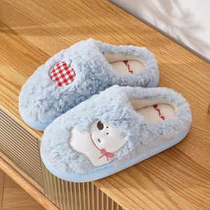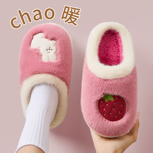 可爱卡通棉拖鞋女2025冬季新款室内居家加绒保暖踩屎感毛毛绒拖鞋