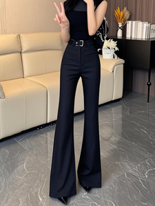 黑色微喇叭休闲西装裤女2025秋季新款高腰修身显瘦百搭垂感拖地裤
