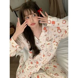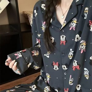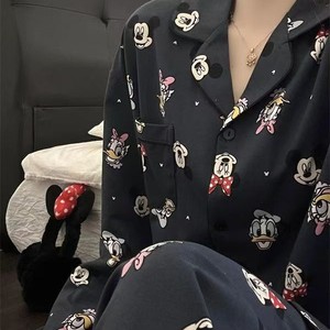 可爱卡通唐老鸭印花睡衣女早秋新款长袖长裤家居服可外穿两件套
