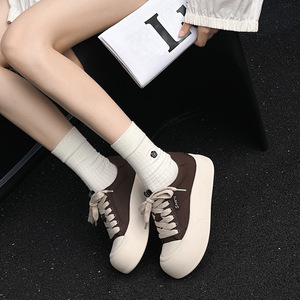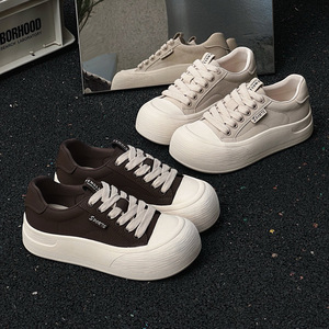 现货【双包装】丑萌娃娃头真皮厚底小白鞋女学生低帮板鞋2025秋款